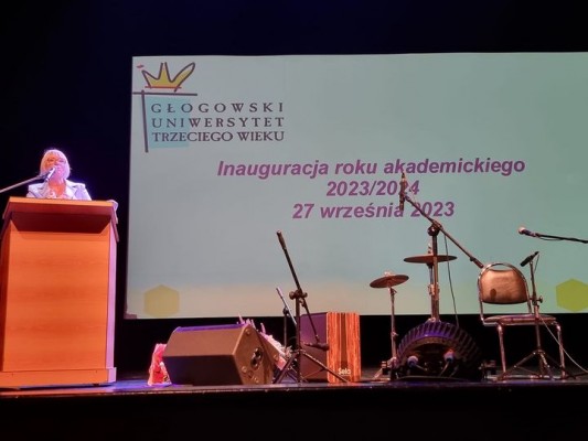 Trwa inauguracja roku akademickiego Głogowski Uniwersytet Trzeciego Wieku na sali pełne ławy słuchaczy Studentom życzyłem realizacji wszystkich zaległych planów i marzeń, a ze swojej strony zadeklarowałem tradycyjnie wsparcie dla uczelni