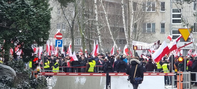 Do tego sporo policji i barierki, których likwidację ogłosił marszałek Hołownia na ostatnim posiedzeniu Sejmu. Na tym samym posiedzeniu ogłosił też likwidację tzw. sejmowej zamrażarki, po czym zagłosował przeciw realizującej to poprawce, więc zdziwieni być nie powinniśmy...
