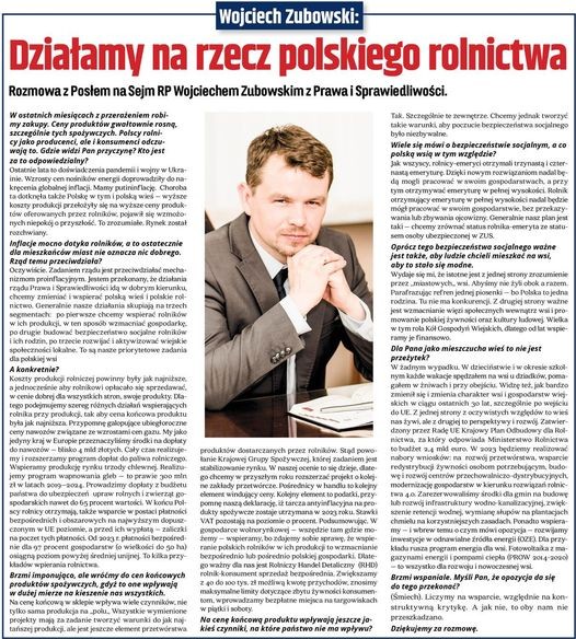 W ostatnim numerze Głos Głogowa - Tygodnik Lokalny miałem okazję przybliżyć nieco działania rządów Prawo i Sprawiedliwość na rzecz rolników i rolnictwa.