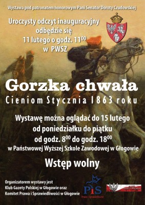 Zapraszam do obejrzenia wystawy „Gorzka Chwała” - poświęconej Powstaniu Styczniowemu, pod patronatem Senator Doroty Czudowskiej.
