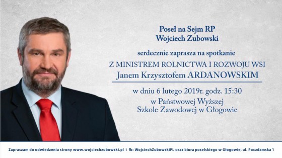 Zapraszam wszystkich (a szczególnie rolników) na spotkanie otwarte, które rozpocznie się o godz. 15.30 w PWSZ w Głogowie.