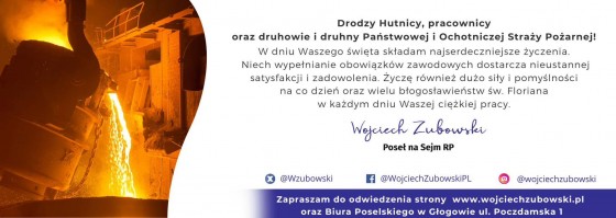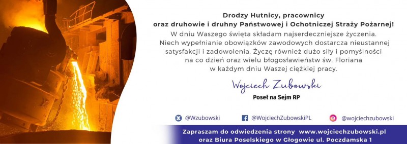 Dziś obchodzimy wyjątkowe święto tych, którzy na co dzień dbają o nasze bezpieczeństwo, ciepło i chleb powszedni. Wszystkim strażakom, hutnikom, piekarzom i kominiarzom – składam najserdeczniejsze życzenia zdrowia, siły, spokoju ducha i dumy z wykonywanej pracy.